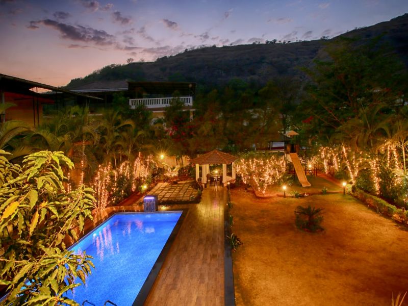 LED TV Refrigerator Kitchen equipments Private Swimming Pool Green Lush Lawn Car Parking 24/7 Caretaker On Call Chef AC Bedrooms